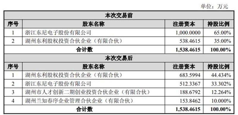 股权变更后,东尼新能源的控制权将转移至湖州东利股权投资合伙企业(有限合伙)手中,而湖州东利为湖州国资下属企业。